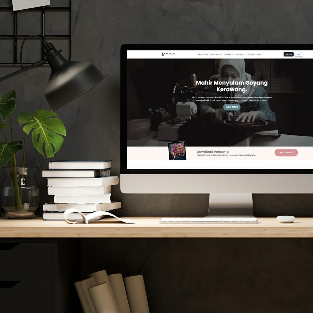 Web Design untuk klien Masterclass Embroidery. Rekaan laman web coaching dan online courses (LMS) berserta dengan fungsi lengkap komuniti, public dan private chat, sistem affiliate, sistem email marketing dan sistem pembayaran atas talian. Selain daripada berfungsi sebagai laman coaching, laman web ini juga memuatkan beberapa fungsi lain seperti live streaming.